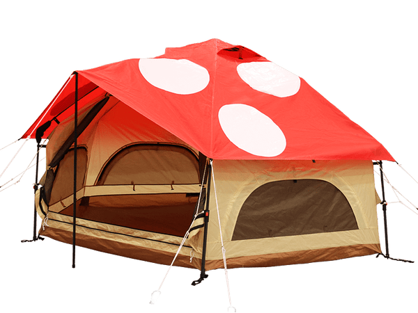 A couple has plenty of space in our couple's package just for Valentine's Day. Our mushroom-shaped Kinoko Mushroom Tent will be the talk of the campsite. And with a 75 sq ft footprint, it's the perfect place to hang out for 6-8 adults. Sleeping space for 2 adults comfortably, maximum 4.