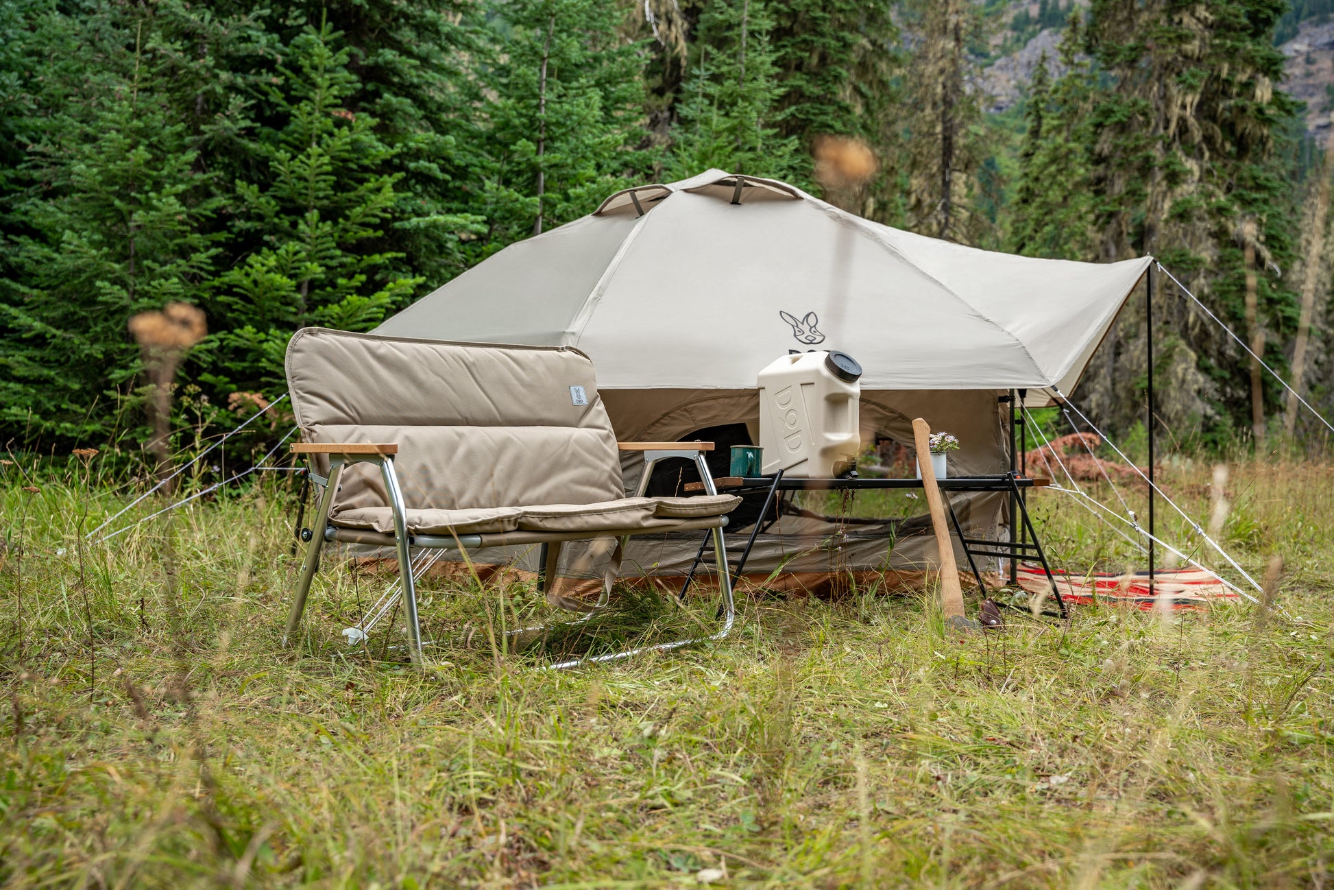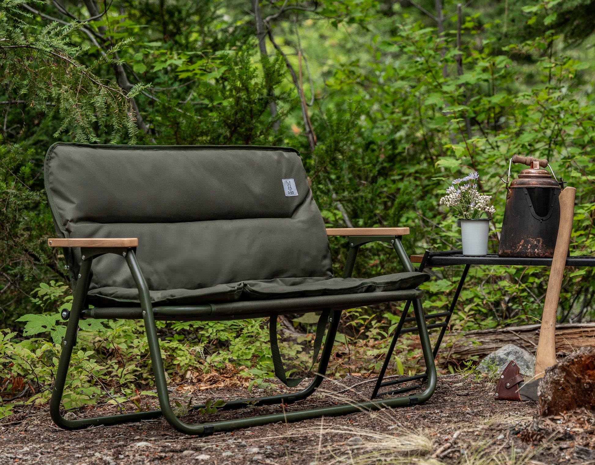 The Good Luck Sofa is an extra wide chair for one, or a cozy seat for two. The super comfortable removable cushion cover is made from washable, breathable 100% cotton. Solid wood arms are pleasant to the touch. The Good Luck Sofa pulls double duty - set it up in the back of your van or SUV to create a shelving system to better organize your gear.