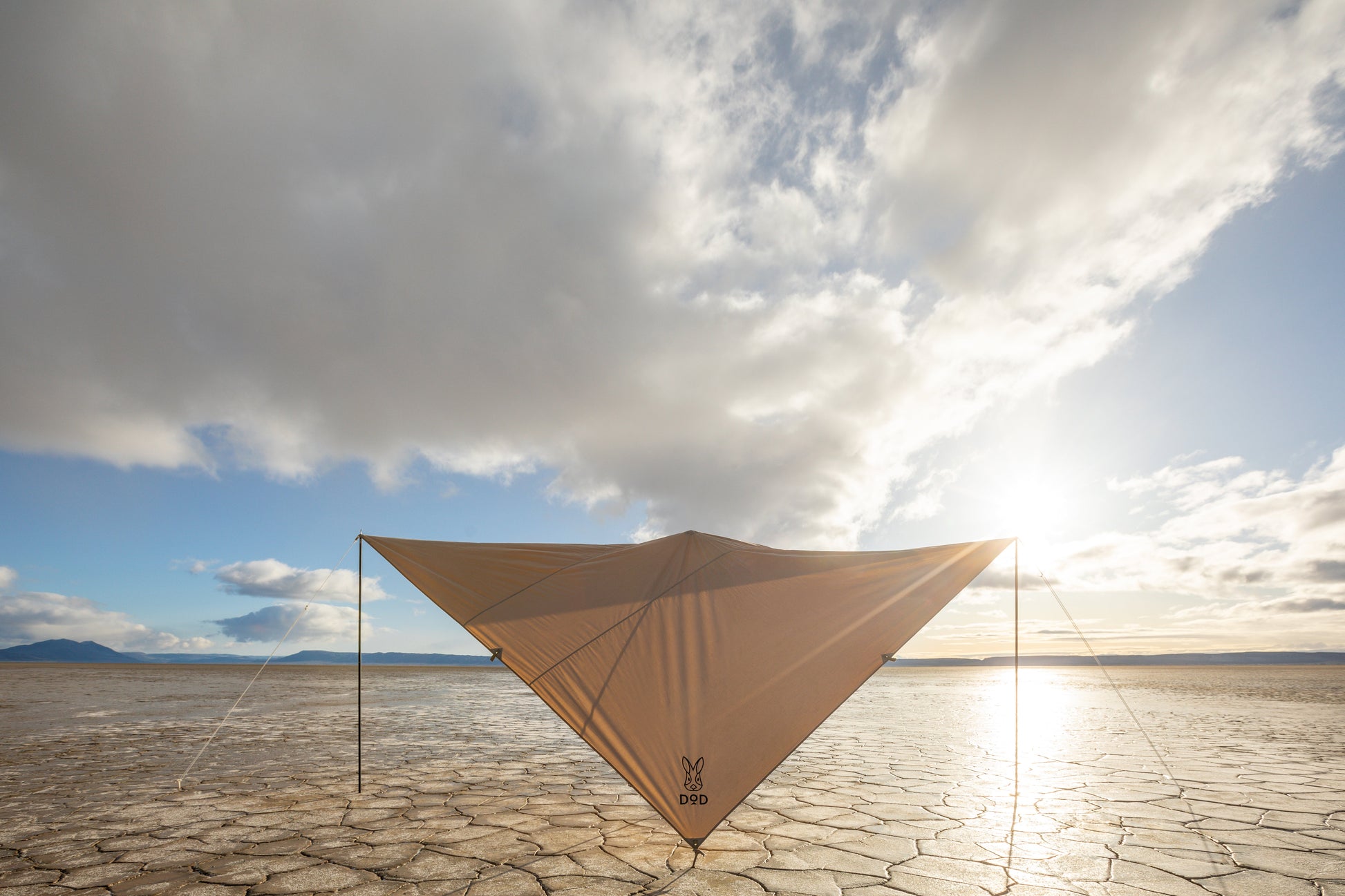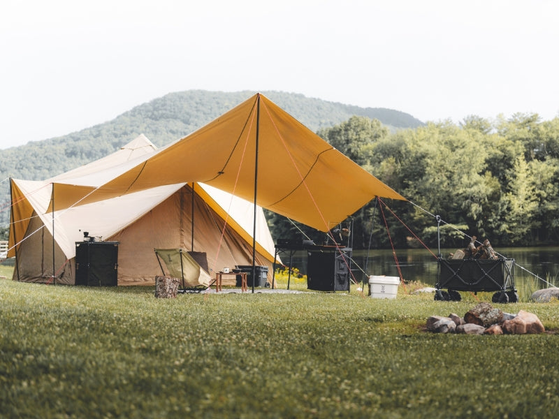 The Kama Tarp creates a massive covered area to your campsite or backyard. The tarp is made to pair with the Kamaboko Tent but works equally well as a stand alone tarp. The Kama is made of durable Canvo™ fabric which which is stronger than polyester and casts deep, cool shadows, great for summer camping. Canvo, unlike polyester, won't melt if it catches a campfire spark. The square shape with many attachment points allow for versatile setups. (For a limited time, comes with pegs, set of two standard poles, and one extra tall pole to lift the center of the tarp).