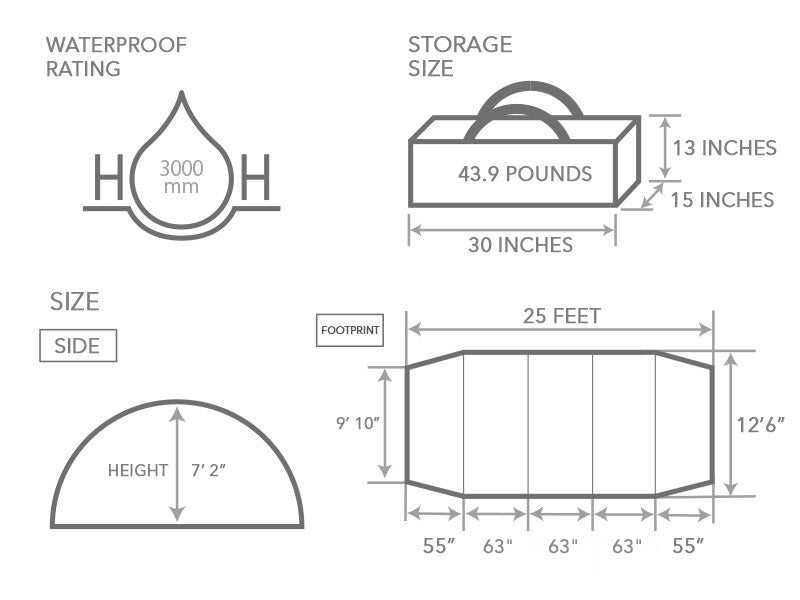 - Super Tent – pitch smaller tents inside, or use as a bug tent, sun/rain tarp.