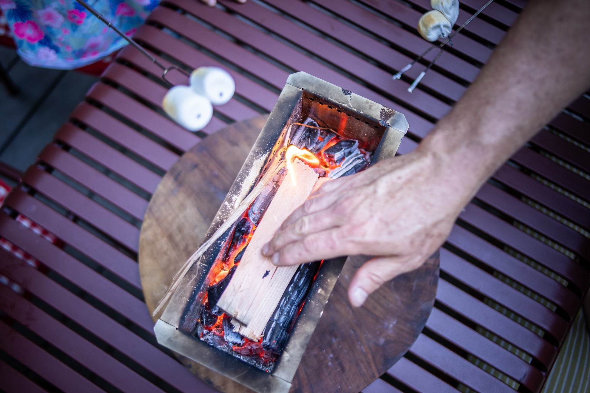 - The elevated fire box won't burn your table or the ground in camp.