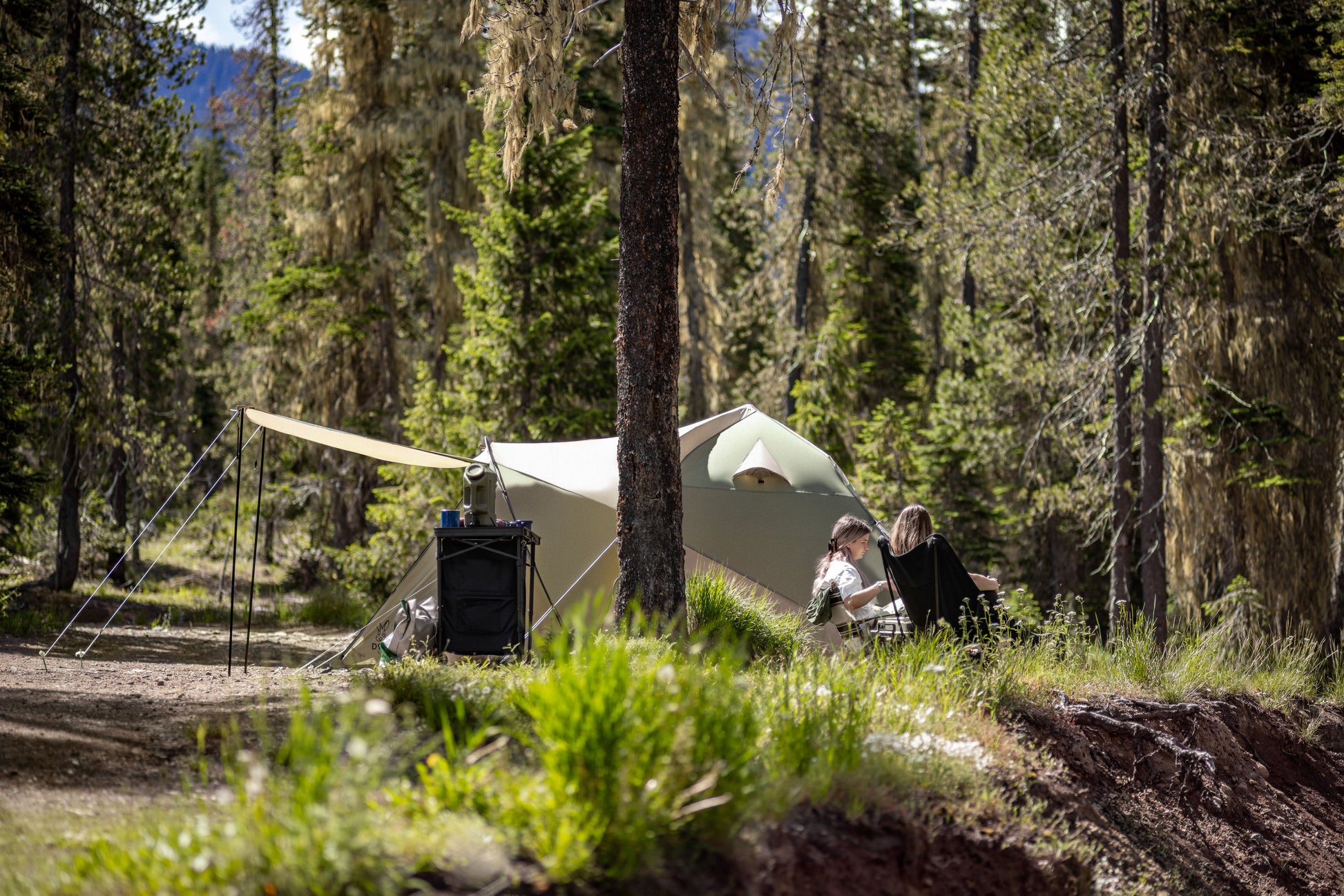THE 1Pull Dome Tent combines ease of setup with spacious comfort, accommodating up to 3 people. Its 1Pull mechanism allows for hassle-free assembly. DOD’s muted color palette adds a touch of elegance to your camping experience. The tent includes a front chamber for additional space, making it perfect for both relaxation and storage. Large footprint awning extends living area and provides shade. (For a limited time, comes with Kiso Tarp Poles for awning).