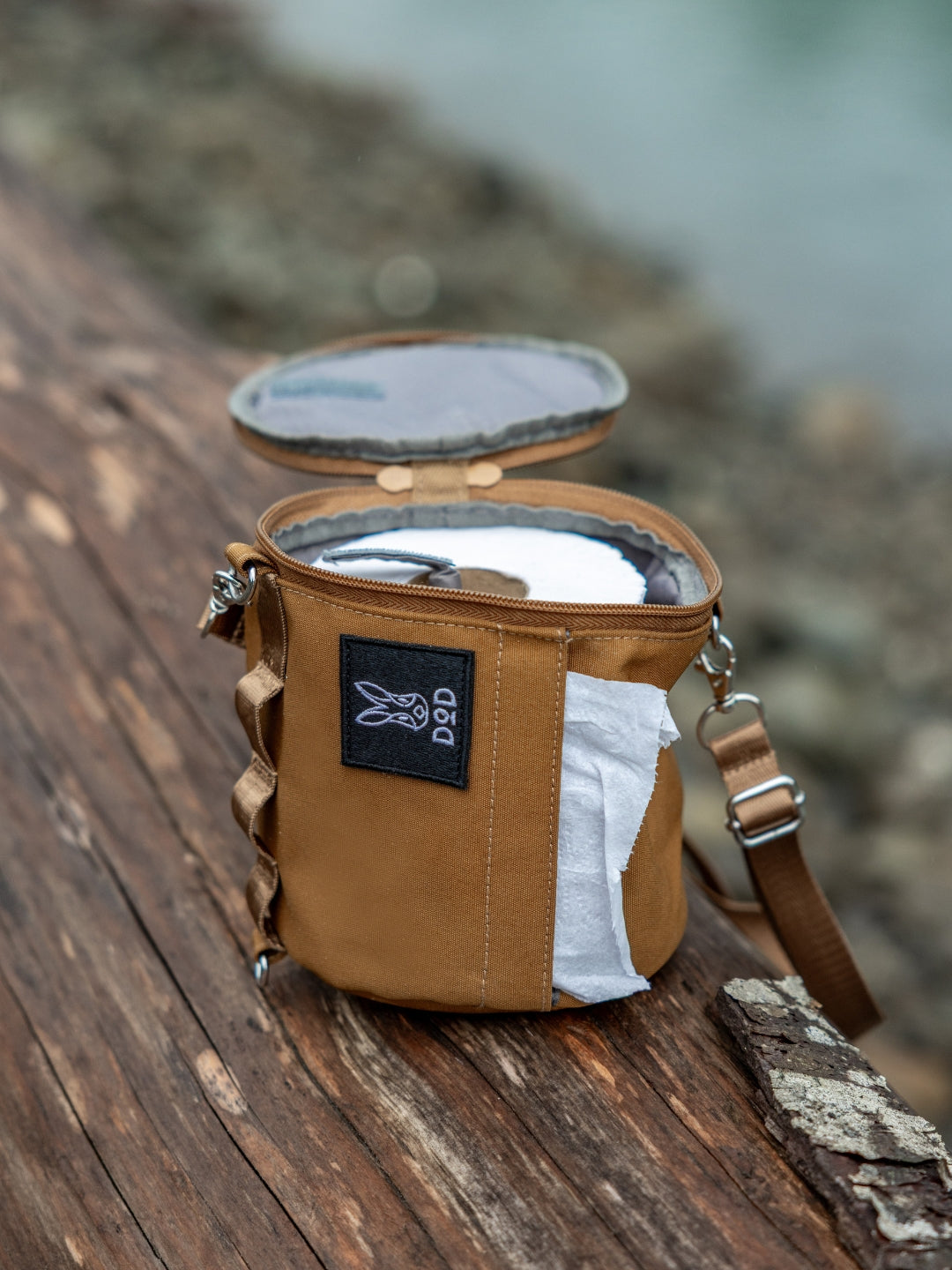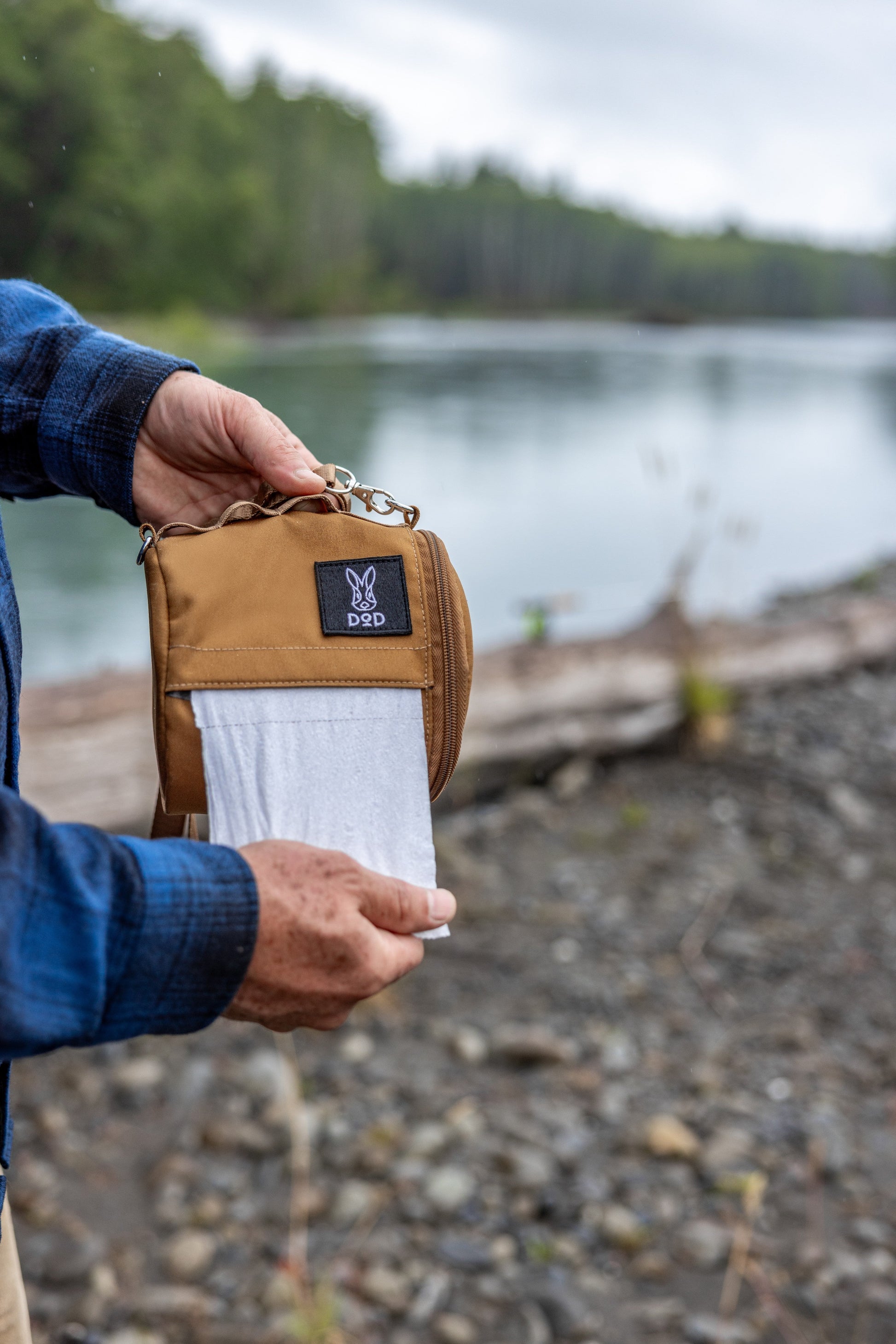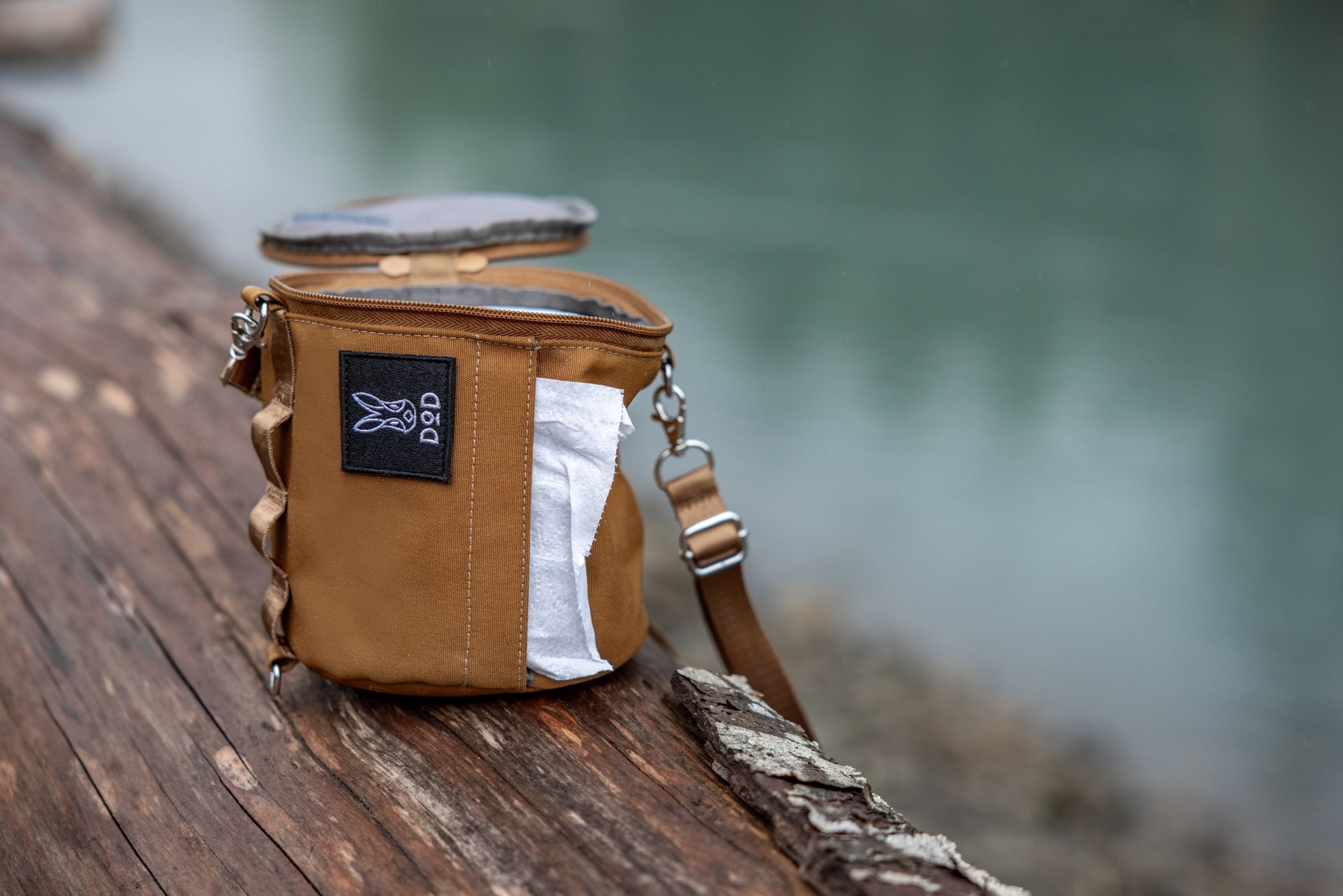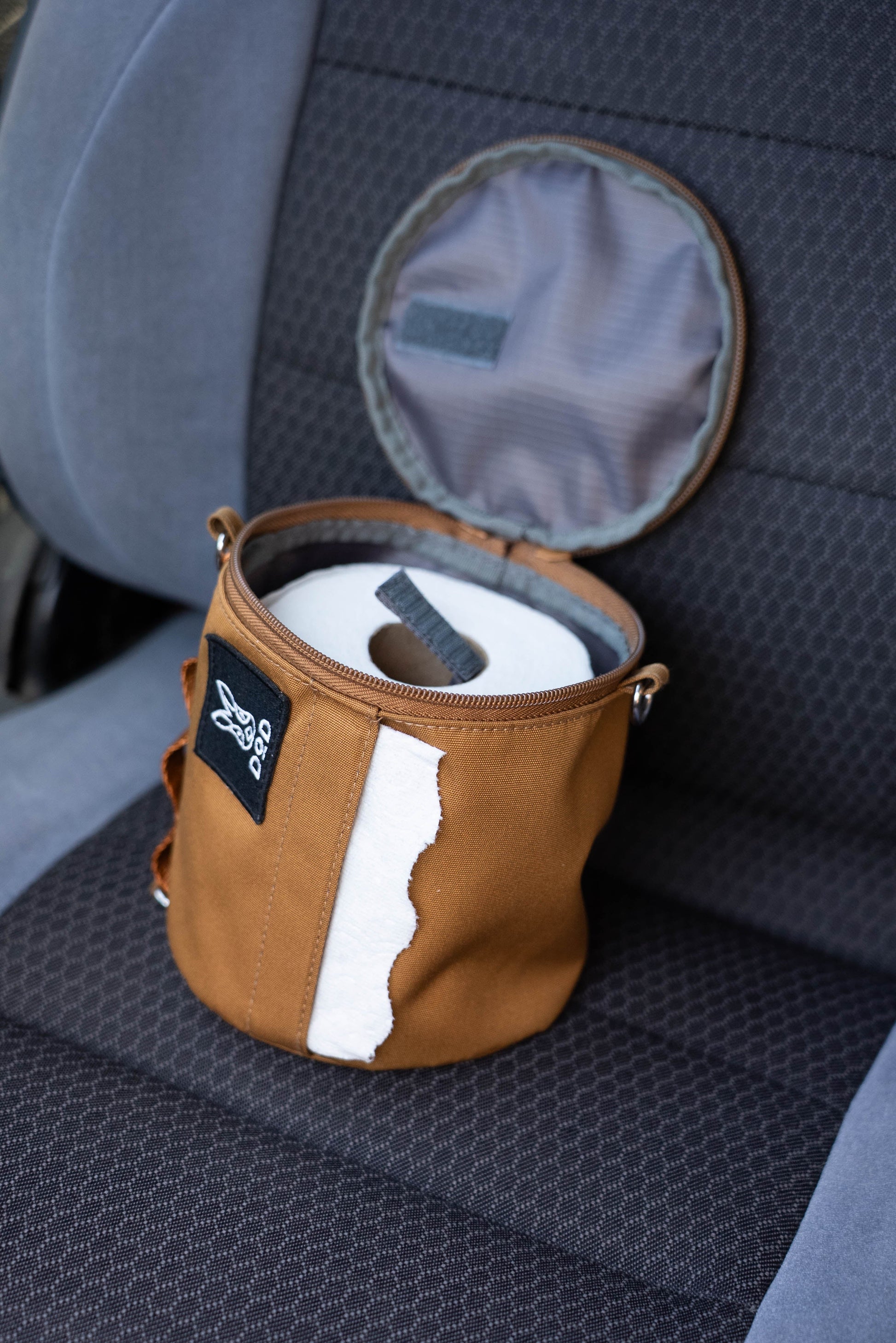 Keep your toilet paper shielded and handy with our compact holder. Crafted with a protective thick polyester, it ensures every pull is smooth, especially as the roll diminishes, thanks to its core rod. Whether you're camping or at a festival, this holder offers a subtle way to carry your essentials.