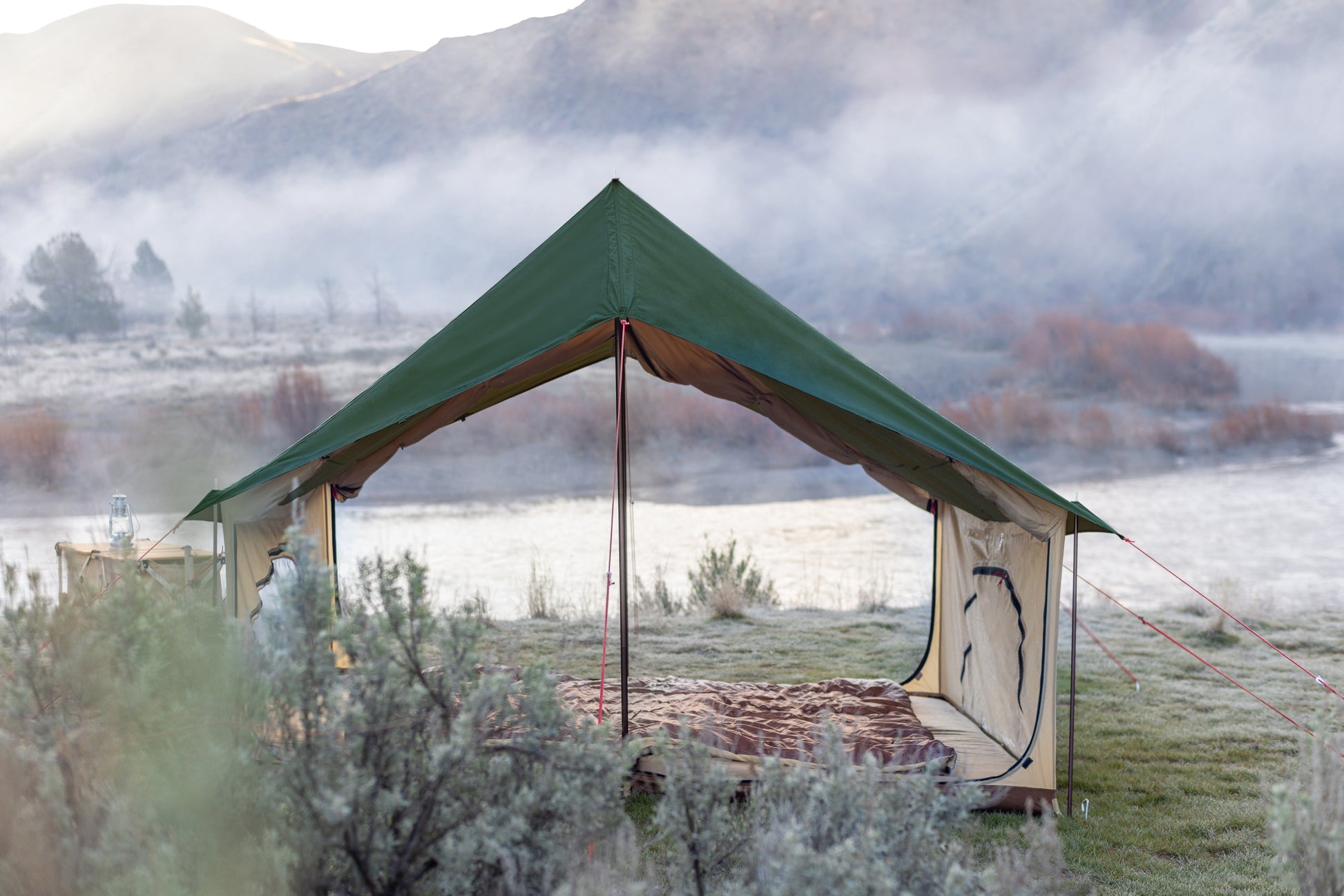 Introducing the Uchi Tent, where classic wall tent design merges with modern functionality to deliver a unique camping experience. Crafted from breathable Canvo™ fabric, this tent offers an inviting space that remains cool in summer and warm in winter. The large mesh windows ensure optimal ventilation, adapting to diverse weather conditions. The near-vertical walls enhance the feeling of spaciousness within, making every moment inside the tent a comfortable one. Plus, expand your living space seamlessly with the attachable Base Camp Awning, sold separately. (Tan has been discontinued).