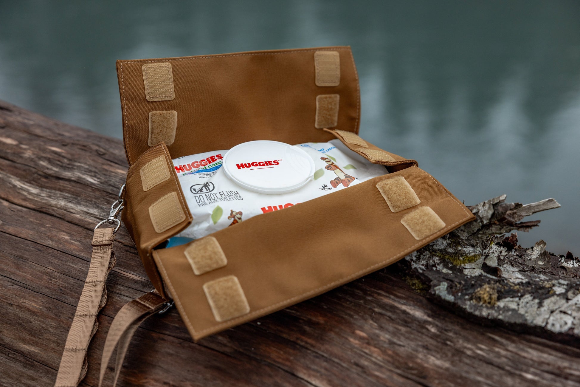 - Roomy enough to hold wet wipes, sanitizers, and a few diapers.